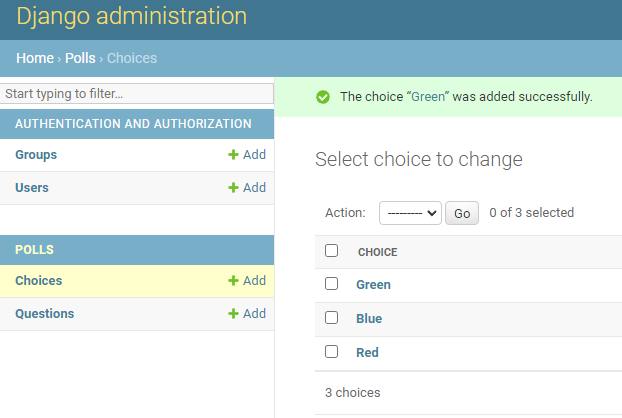 관리자 페이지에서 choice 목록을 추가했습니다!