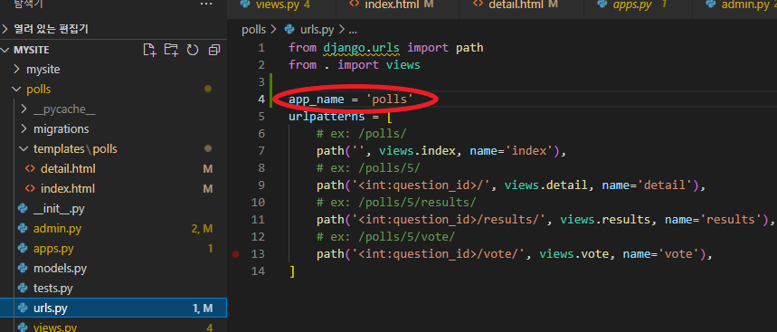 다른 앱에서도 detail에 대한 URL 이름을 사용할 수 있기 때문에